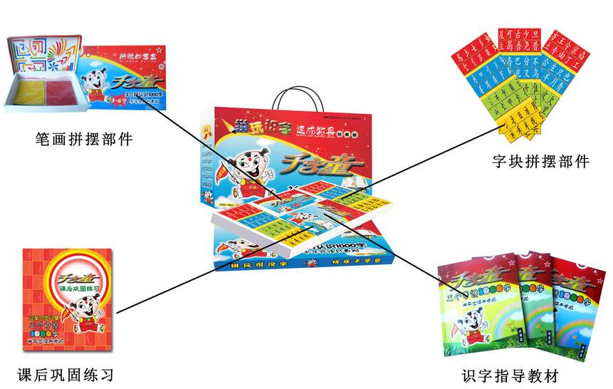 公司自主研发的儿童智力产品--“千字童拼玩识字速成教具”是目前国内一的专业拼玩识字教具,二OO三年五月产品正式上市以来,其“辐射式识字法”及“以兴趣引导学习”的教学思路开创了我国识字教育史上的“双快”识字先河。其三个月识千字的惊人速度引起了业界内外的高度关注,被国内外誉为“挑战传统识字教育”的革命性产品。经过多年的发展,公司以“千字童拼玩识字速成教具”作为平台,凭借强大的研发能力,相继开发出二代新品、数学对对碰、幼教版等并规划立项绘画、英语、玩具等一系列多门类、品相全的早教类产品。