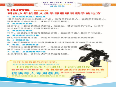 科技少年机器人俱乐部成立于2013年,是大洲教育集团整合十二年教学精髓基础上,积极引进Zui适合中国儿童的机器人教育品牌“韩国HUNAROBO机器人”和优秀、先进的机器人教具和教学技术,本着“科技兴国,教育为本”的理念,让孩子们学中乐、乐中做、做中悟,开创了科技智能教育的新模式!从小培养孩子的探索精神,孩子进入充满想象的未来世界,着手于孩子动手能力的培养,着眼于孩子创新能力的培养。新的体系、新的课程,更多家长看好我们的机器人!