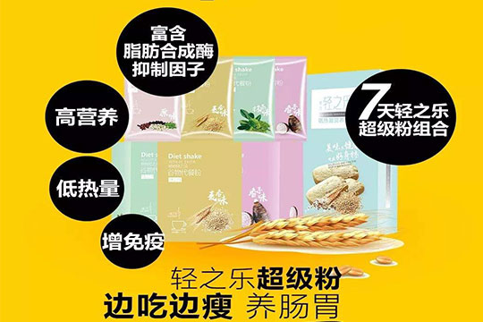 轻之乐谷物代餐粉由黑豆、桑甚、荧实、枸杞、扁动获苓、山药、橘红等组成。奇亚籽、藜麦、亚麻籽、鹰嘴豆被认为是地球上营养价值高的4种植物种子,是飞行员食品。