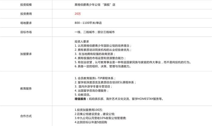 截至2016年6月,全国意向加盟商已达43家,预计在2016年底达到100家,落地60家!随着公司的成长,规模的扩大,公司未来还将建设黑格**国际幼儿园、黑格**贵族学校、黑格**国际妈妈俱乐部等等......