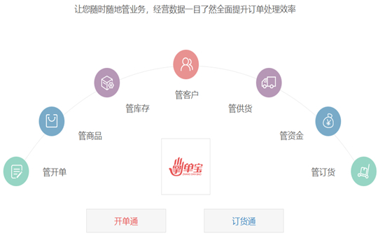 品牌简介:掌单宝团队走访调研了全国许多专业市场,了解到国内的批发行业的主要需求在于:简单快速的录单、开单,快捷方便的盘库、调拨,新老客户的维护、补货,清晰明了的各项数据统计等问题。
