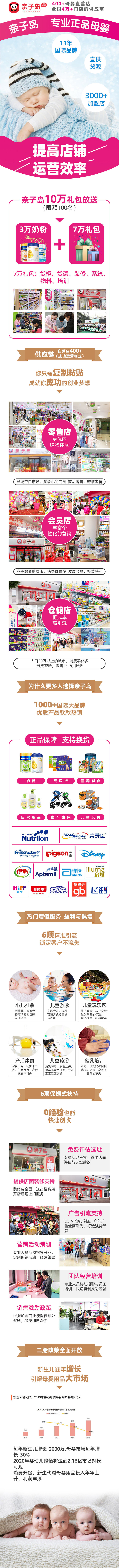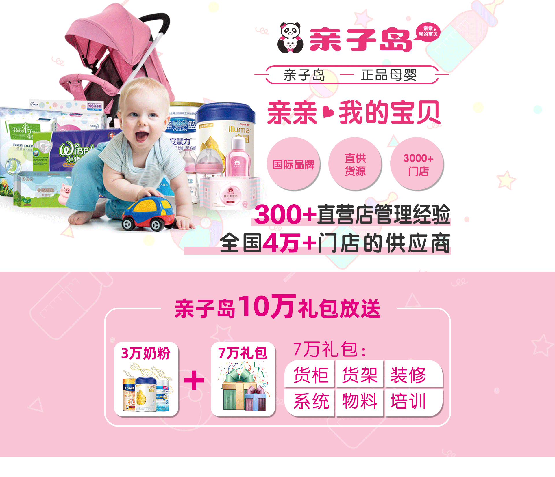 亲子岛公司总部位于花城广州,是全国知名的母婴连锁品牌,目前亲子岛在全国已经有超过3000+门店,公司秉承“ 为每个家庭提供高品质的泛母婴产品及服务 ”的理念,致力于成为中国母婴行业的翘楚。亲子岛集团是从事孕婴童关联产业,生产、研发、代理、贸易、销售、连锁、服务为一体的商业组织。成立以来专注于母婴供应链,为母婴消费者提供放心、安全的母婴产品和优质服务。
