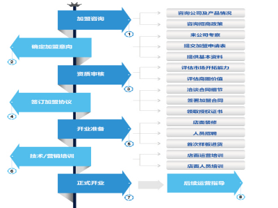 6、开业引导:开业引导,包含开业活动策划与执行支持两个范畴,涉及展厅的展示、产品的推介、方案的策划、活动的执行等诸多方面,同时将为经销商的后续营销提供纲领性支持。对开业前期准备与流程提供指导性意见,对有需要的加盟商,公司可提供区域经理开业现场指导。